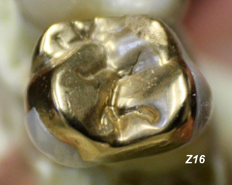 - Zähne: Die Zähne 26, 27, 37, 36, 34, 46 und 47 weisen Kunststofffüllungen auf, Zahn 17 eine okklusale Zementfüllung. Der Zahn 16 ist mit einer Goldkrone versorgt.