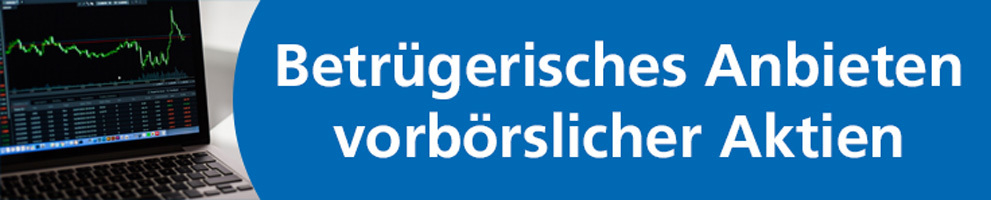 Neben dem stark verbreiteten Phänomen des Cyber-Trading Betruges steigen seit Mitte des Jahres 2021 die Zahlen der Anzeigen von Privatpersonen im Bereich des betrügerischen Anbietens vorbörslicher Aktien.